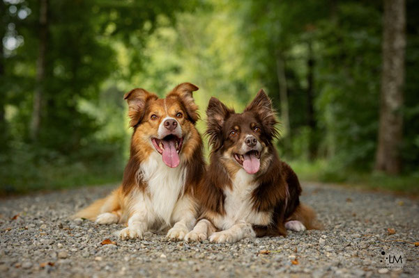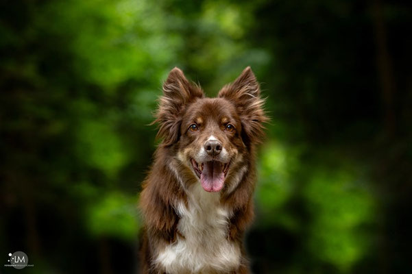 Draussen oder beim Arbeiten wandelt sie sich zum temperamentvollen Powerpaket. Ich staune immer wieder wie schnell sie lernt und mitdenkt. Ihren ausgeprägten Jagdtrieb (Wild) konnte ich mit viel Training kanalisieren, heute ist sie gut kontrollierbar. Gewitter-/Geräuschangst ist kein Thema bei ihr.