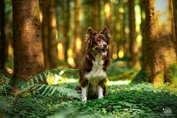Draussen oder beim Arbeiten wandelt sie sich zum temperamentvollen Powerpaket. Ich staune immer wieder wie schnell sie lernt und mitdenkt. Ihren ausgeprägten Jagdtrieb (Wild) konnte ich mit viel Training kanalisieren, heute ist sie gut kontrollierbar. Gewitter-/Geräuschangst ist kein Thema bei ihr.